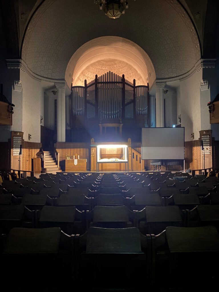 Doku KRAJ, Performance „HAVE A LOOK“ mit Untermalung von dem Komponisten Maxim Kolomiiets und Organistin Julia Vash in der Philippuskirche, 2025