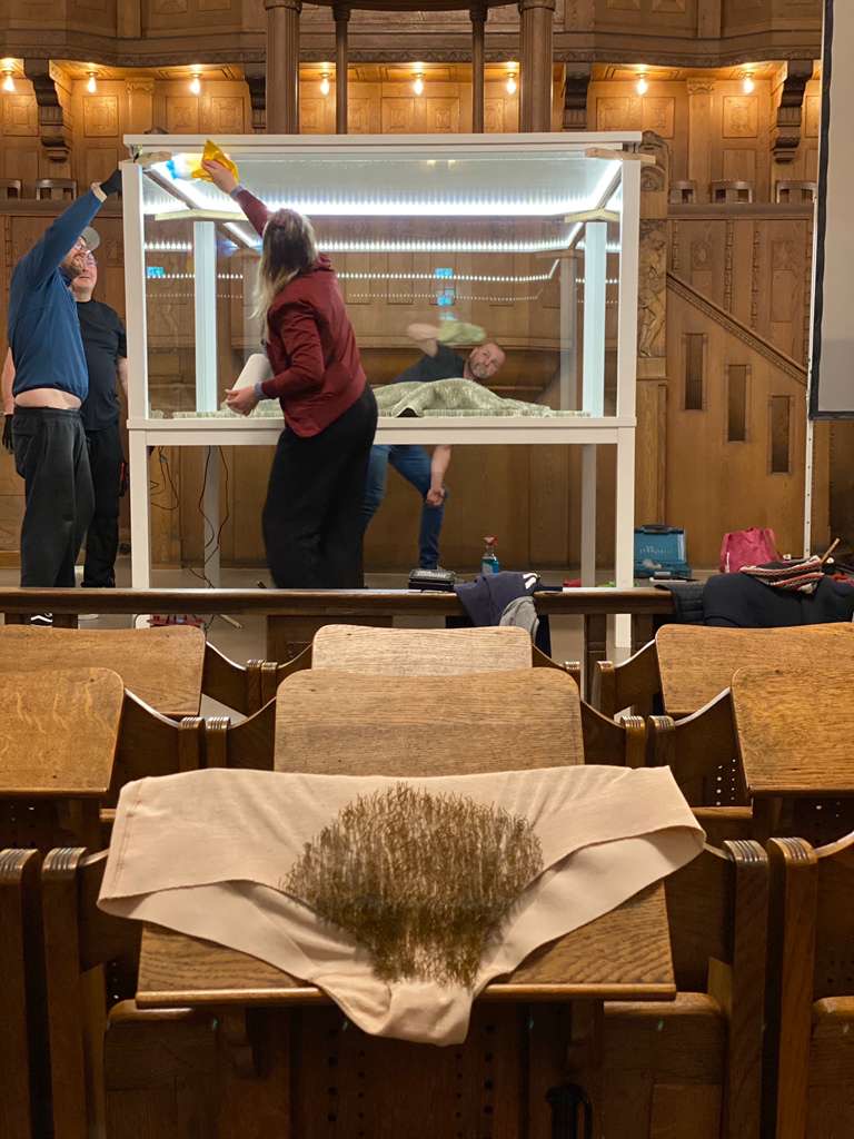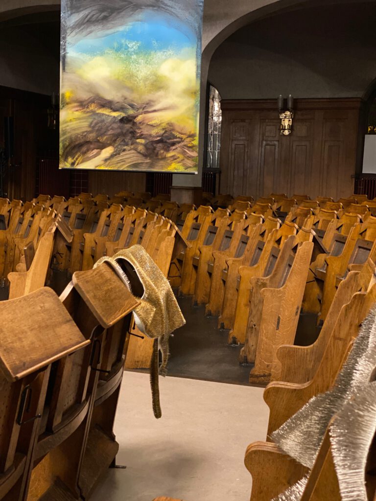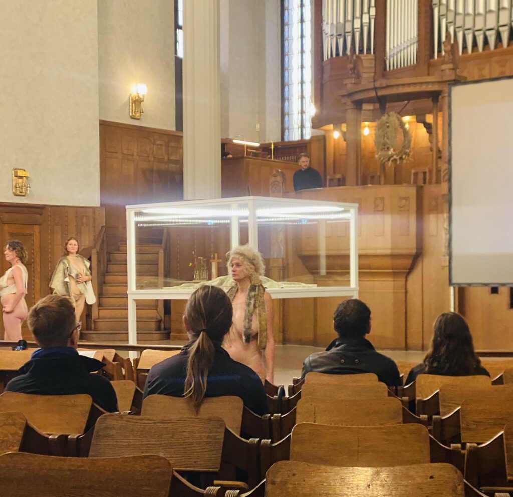 Doku Have a look, Performance 1 Std, mit Objekten von Anja Heymann, zum Kooperationsprojekt kraj in der Philippuskirche, Leipzig, 2025